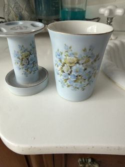 Lefton Very Old Porcelain Ceramic Tooth Brush Holder And Cup $25Miami, FL