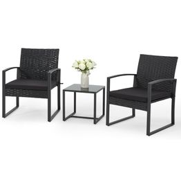 3 Pieces Patio Furniture Set, Outdoor Rattan Bistro Set with Coffee Table, Durable Steel Frame with Strapped Cushions for Garden, Balcony, Poolside, B$65Pico Rivera, CA
