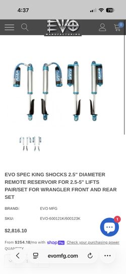 King 2.5 front & rear shocks for jeep JL jeep JLU remote reservoir. Used shocks Jeep wrangler 2018-2026+ present$1,400Henderson, NV