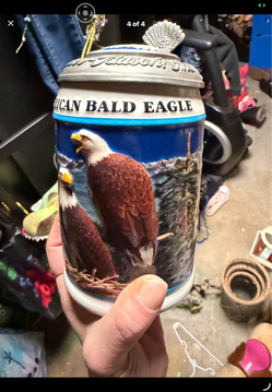 This item is a 1999 Budweiser American Bald Eagle Series lidded beer stein, specifically the "Spring" edition labeled$20South Bend, IN