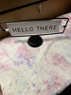 This product is a Hearth & Hand with Magnolia reversible metal tabletop sign, which features "Miss You Already" on one side and "Hello There" on the o$10South Bend, IN