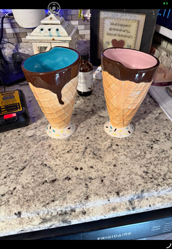 These collectible items are Pier 1 Imports ceramic waffle cone sundae dishes, which are designed to look like ice cream cones dipped in chocolate.$20South Bend, IN
