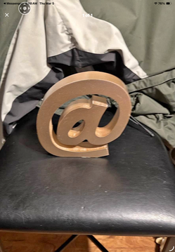 This item is a 9-inch gold-colored wooden '@' sign decor.$7South Bend, IN