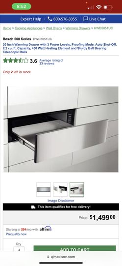 Bosch 30” Proofing/warming Drawer$199Annapolis, MD