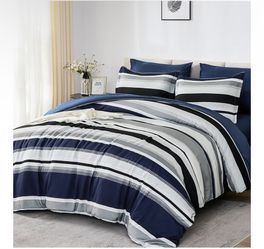 Queen Comforter Set 7Pcs ( Striped Navy)$35Lake Elsinore, CA