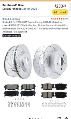Brake Kit for 2012-2017 Toyota Camry, 2013-2018 Avalon, Lexus$180Orlando, FL