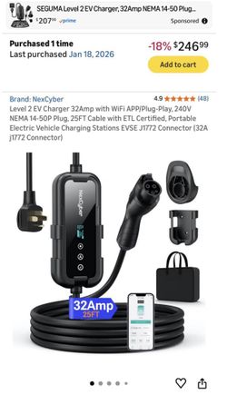 Level 2 EV Charger 32Amp with WiFi APP/Plug-Play, 240V NEMA 14-50P Plug, 25FT Cable$200Orlando, FL