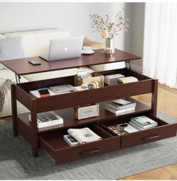 Coffee Table, Lift Top Coffee Table with Drawers and Hidden Compartment, Retro Central Table with Wooden Lift Tabletop, for Living Room $75Rowland Heights, CA