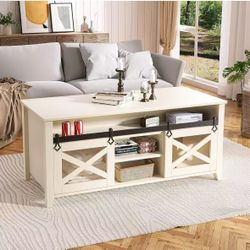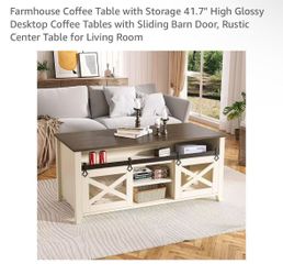 Farmhouse Coffee Table with Storage 41.7" High Glossy Desktop Coffee Tables with Sliding Barn Door$50West Covina, CA