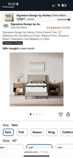 Twin 12’’ Mattress With Gel Memory Foam$150Rosemead, CA