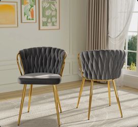 Modern Velvet Dining Chairs Set of 2, Woven Upholstered Dining Chairs with Slver Metal Legs, Modern Accent Chairs for Living Room, Dining R$125Marietta, GA