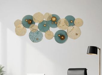Kreiaoer Large Metal Wall Art Decor, 51"x24" Lotus Leaf Wall Decoration, Modern Luxury Wall Sculpture with Colorful Ruffled, 3D Hanging Scu$40Marietta, GA