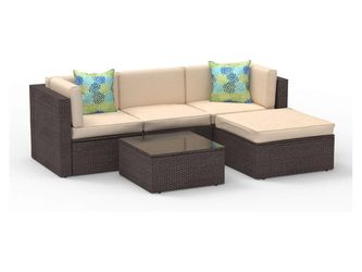 Cloud Mountain 5 Piece Patio Sectional All-Weather PE Rattan Wicker Outdoor Sofa with Glass Coffee Table, Brown Wicker with Khaki C$325Rancho Cucamonga, CA