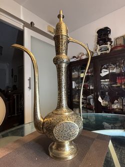 18.5” Original Etched Brass Teapot Coffee Pot Stamped India And Number$185Canton, OH