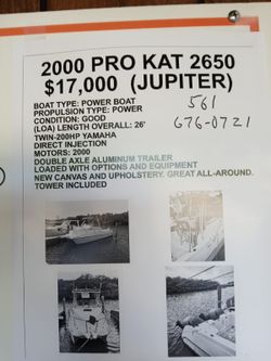 2000 Pro Kat 2650 Boat$17,000Jupiter, FL