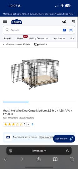 You & Me Wire Dog Crate Medium 2.5-ft L x 1.58-ft W x 1.75-ft H$50Spanaway, WA