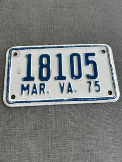 1975 Virginia Motorcycle License Plate$40Lecanto, Florida