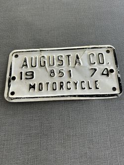 1974 Augusta Co Motorcycle License Plate$20Lecanto, Florida