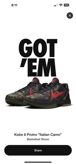 *** Kobe 6 Italian Camo *** Men’s Size 9 *** Brand New ***$370Dana Point, CA