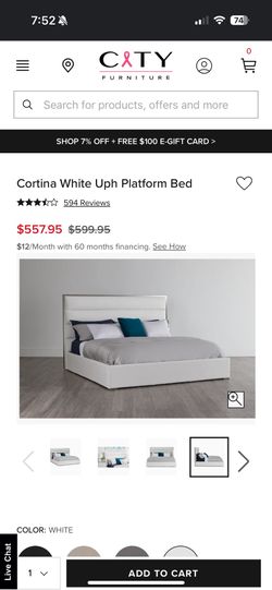 Cortina White Uph King Bed frame. $250Sunny Isles Beach, FL