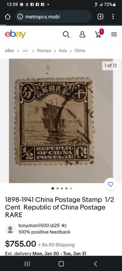 1/2 CT Republic Of China Postage $700Inglewood, CA