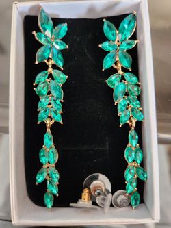 Gold Tone Dark Green Dangle Earrings $20Vancouver, WA