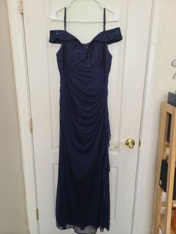 B&A by Betsy & Adam Blue Sequin Top Off the Shoulder Ruched Long Gown Size 14$75Las Vegas, NV