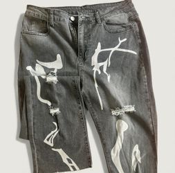 Women Sexy Stretchy Slim Fit Flared Jeans With Holes And Print, Dark Grey $12Sauk Village, IL