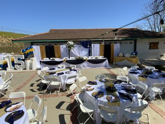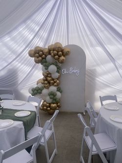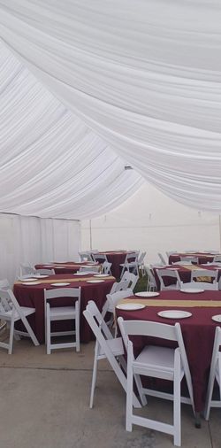 White Resin Chairs, Canopy Draping, Decor $1Riverside County, CA