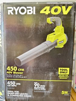 Ryobi RY40LB01K 40V 550CFM Cordless Battery Powered Blower (Tool Only)$50Garland, TX