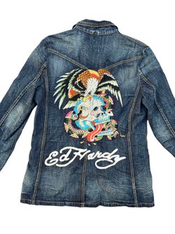 Vintage Ed Hardy by Christian Audigier Denim Jean Jacket with Embroidered Eagle Skull $115Miami, FL