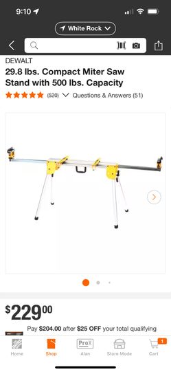 DEWALT 29.8 lbs. Compact Miter Saw Stand with 500 lbs. Capacity$150Garland, TX