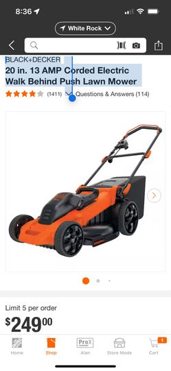 BLACK+DECKER 20 in. 13 AMP Corded Electric Walk Behind Push Lawn Mower $90Garland, TX