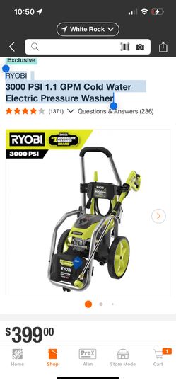 RYOBI 3000 PSI 1.1 GPM Cold Water Electric Pressure Washer$170Garland, TX