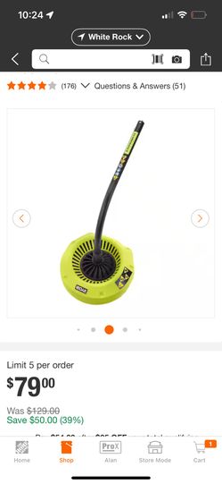 RYOBI 40V HP Brushless Whisper Series 160 MPH 650 CFM Cordless Battery Leaf Blower (Tool Only)$30Garland, TX