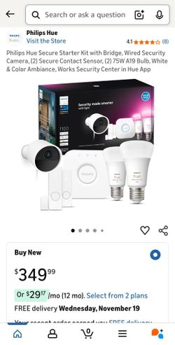 Philips Hue Secure Starter Kit with Bridge, Wired Security Camera, (2) Secure Contact Sensor, (2) 75W A19 Bulb, White & Color Ambiance, Works Security$305Phoenix, AZ