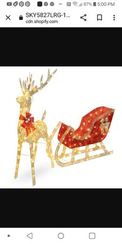 Lighted Christmas Reindeer & Sleigh Outdoor Decor Set w/ LED Lights