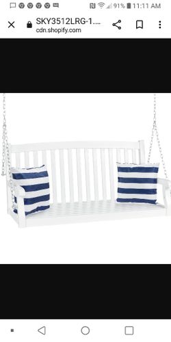 Wooden Curved Back Hanging Porch Swing Bench w/ Mounting Chains - 48in