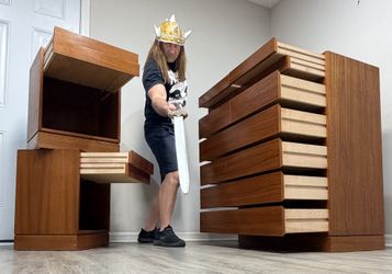 RARE EARLY 1970s ARNE WAHL IVERSEN DANISH TEAK 10 DRAWER TALLBOY & NIGHTSTANDS FOR Vinde Mobelfabrik!$1,100Jacksonville, FL