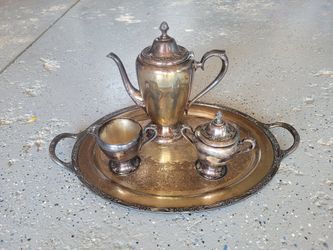 1847 Rogers & Bro Antique Silverplate Oval Rose Trim Coffee, Cream & Sugar Set. $60Elmhurst, IL