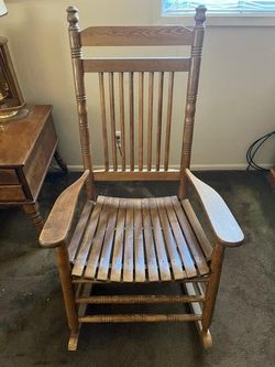 Vintage rocking chair with wooden slats Cracker Barrel branded on chair$100Elmhurst, IL