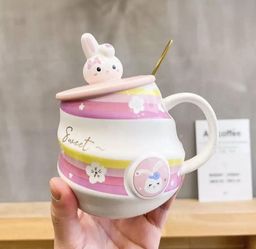 Cute Girl Heart Mug Ins Creative Personality Cartoon Rabbit Ceramic Mug Rainbow Kawaii Mug Water Cup Coffee Cup with Lid Spoon Message me if you are i$18White Oak, MD