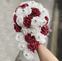 18 cm Waterfall New Wedding Bouquet Bride Bridesmaid Pearl Rhinestone PE Rose Flower for Marriage W330PE Color: white Message me if you are interest$12White Oak, MD