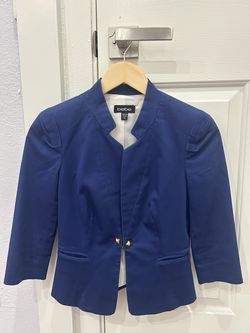 bebe Blue Suit Jacket Blazer 3/4 Sleeve Gold Tone Hardware Size 00 Women$50Westminster, CA