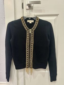 Michael Kors Black Knit Cardigan Sweater XS Gold Chain Trim Full Zip Long Sleeve$50Las Vegas, NV