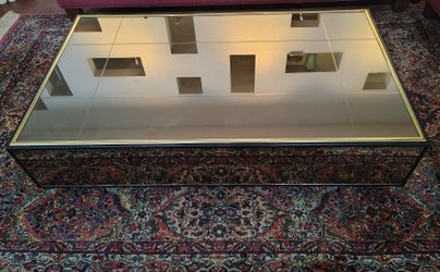 70s Italian Designer Mirrored Coffee Table Solid Walnut Etched / Cut Top Black and Brass 30×54×15"$600Cuyahoga Falls, OH