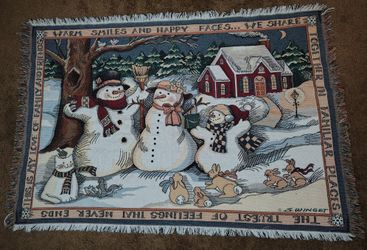 Vtg Winter Holiday Afghan 60 × 40" Snowman Family Bunny Friends Goodwin Weavers S. Winget Tapestry$20Cuyahoga Falls, OH