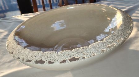 Ooak Huge 16" Signed Tim Peters Studio Ceramic Bowl Hand Carved Tree Rim circa 2000 Unique$100Cuyahoga Falls, OH