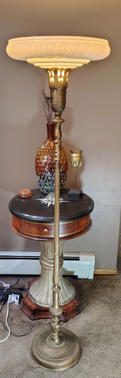 Antique 1910s 62" Art Deco Torchiere Floor Lamp Original 15" Pearlescent Glass Shade$300Cuyahoga Falls, OH