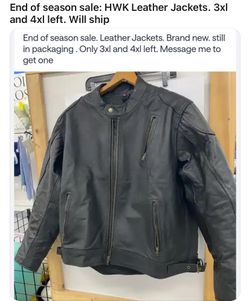 End Of Season Sale. HWK Motorcycle Leather Jackets. Brand New . In Packaging. Only 3xl Snd 4xl Left And They Are Going Fast. Will Ship$59Yardley, PA